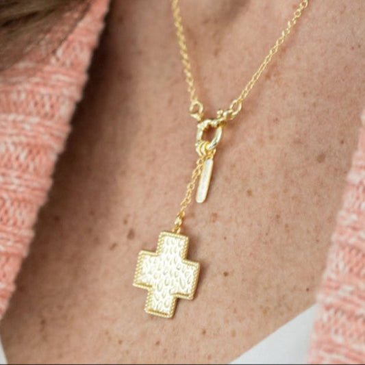 Roped Cross Pendant Necklace with "I Am" Charm
